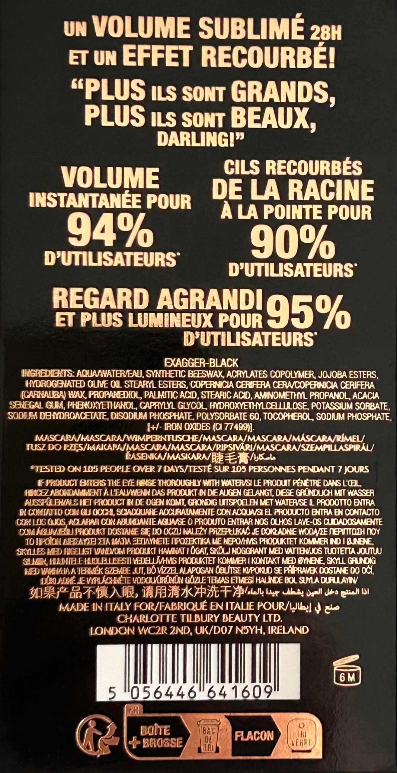 Długotrwała, odporna na rozmazywanie, zapobiegająca powstawaniu grudek, odporna na wilgoć, niekrusząca się mascara to sekret Charlotte, który na 28 godzin pokręca rzęsy i zwiększa ich objętość! 9 x większa objętość już po jednej aplikacji!