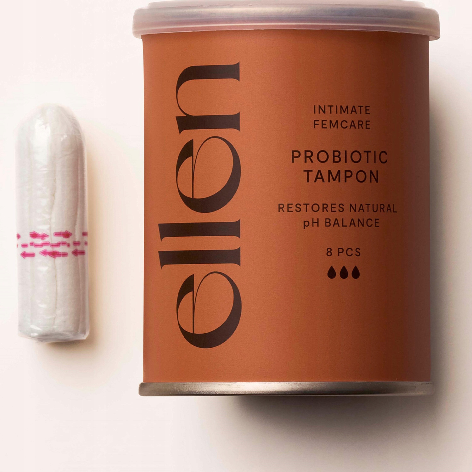Tampony probiotyczne ellen® to pierwszy na świecie produkt tego typu, który nie tylko absorbuje płyn menstruacyjny, ale również wspiera równowagę mikrobiologiczną. W składzie znajduje się Lacto Naturel (LN), zawierający trzy szczepy bakterii, które wzmacniają swoje działanie. Regularne stosowanie tamponów probiotycznych ellen® może przynieść pozytywne efekty już po pierwszej aplikacji, a niektóre użytkowniczki zauważają korzyści po 3-4 cyklach menstruacyjnych.