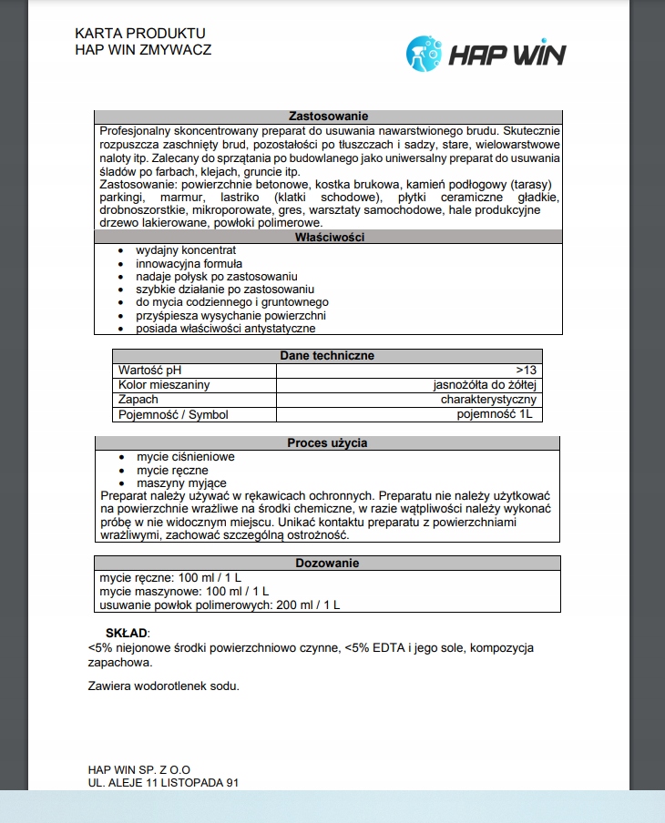 Zalecany do sprzątania po budowlanego jako uniwersalny preparat do usuwania śladów po farbach, klejach, gruncie itp.