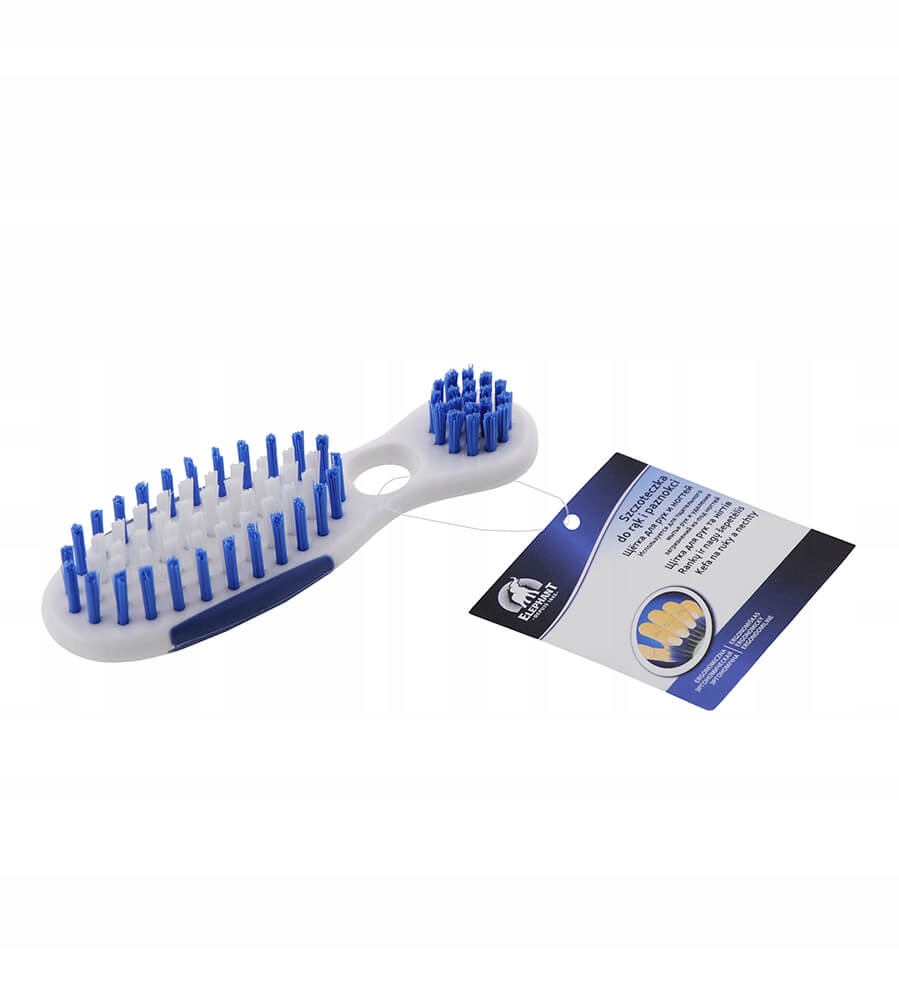 Dokładnie czyści dłonie i paznokcie dzięki różnej długości włosiu. Ergonomiczna forma sprawia, że szczoteczka pewnie leży w dłoni i jest wygodna w użyciu.