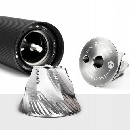 Żarna wysokiej jakości Opatentowane stożkowe żarna S2C 660, wykonane z wysokowęglowej stali nierdzewnej SUS420. Wyjątkowo precyzyjne – w ich projektowaniu skupiono się na poprawieniu cięcia ziarna i zmniejszeniu jego zgniatania w momencie mielenia. To rozwiązanie zapewnia większą precyzję mielenia i mniejszą produkcję drobnych cząsteczek kawy. Duża średnica 38mm pozwala na szybkie i dokładne mielenie.